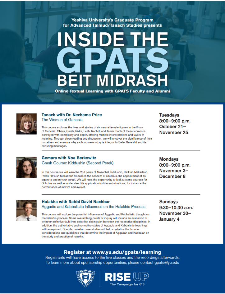 Yeshiva University’s Graduate Program For Advanced Talmud/Tanach Studies Presents: