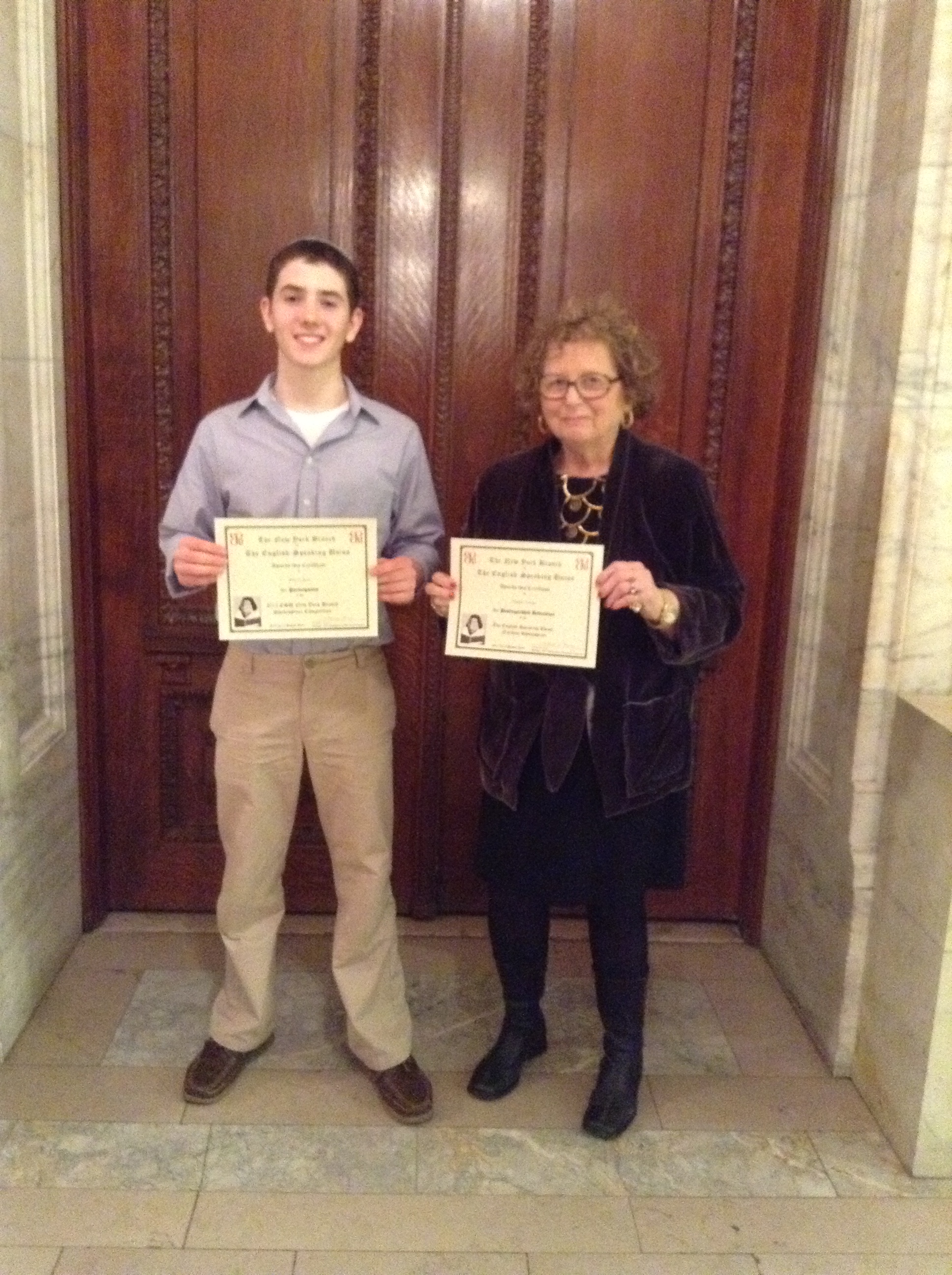 I had a great time performing and meeting many of the contestants there. Although I did not win and move on to the Finals, I greatly enjoyed the experience and I truly think that I gained something from it. I would like to thank Mrs. Levitt and Rabbi Jordan Rosenberg (a former MTA instructor) for coaching me for this event and Ms. Lewis for providing support and interpreting the sonnet with me. I would also like to thank the runner-up, Zack Kaufman ('13), who performed a very well-done monologue from Hamlet, and Isaac Krasnopolsky ('13) for providing support in the audience. It was a very interesting experience and I am looking forward to winning the Semi-Finals next year.