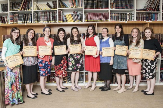 On May 21, Stern College for Women’s Graduate Program in Advanced Talmudic Studies celebrated its 13th commencement, awarding 10 Master of Arts degrees to its new graduates in a ceremony held in the Lea and Leon Eisenberg Beit Midrash on the Israel Henry Beren Campus. At the event, President Richard M. Joel addressed the graduates, saying, “I am warmed by the light and potential of what you, small in number, but unbelievable in strength, can do.”