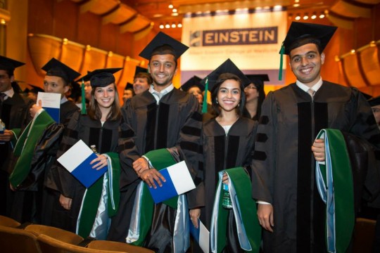 On May 28, the Albert Einstein College of Medicine awarded 218 degrees—including 185 MDs, six MD-PhDs, and 27 PhDs—to its Class of 2015 at a ceremony held in the Lincoln Center’s Avery Fisher Hall. Dr. Darrell G. Kirch, president and chief executive officer of the Association of American Medical Colleges, delivered the evening’s keynote address, “Gifts Given and Promises Made,” which discussed the state of health care in America and a doctor’s ethical commitment to create a healthier and more just society.
