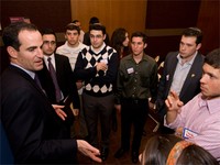 Students also heard from Rabbi Josh Joseph, chief of staff in the Office of YU President Richard M. Joel, and—by his own admission—an extremely unlikely candidate to work on Wall Street. After graduating from the University of Pennsylvania, Rabbi Joseph studied at Yeshivat Har Etzion in Israel. Upon his return to the U.S., Rabbi Joseph pursued a master’s degree from YU’s Bernard Revel Graduate School of Jewish Studies and semicha [rabbinical ordination] at Rabbi Isaac Elchanan Theological Seminary--at which point he “took the natural next step into Wall Street,” he joked.
