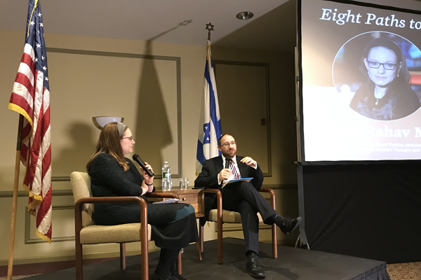 Rabbi Dov Lerner, YIJE’s rabbi and resident scholar at the Straus Center, then engaged Sivan Rahav Meir, the World Mizrachi Distinguished Visiting Lecturer at the Straus Center and the Yeshiva University Center for Israel Studies, in a discussion centered upon eight discrete phases, each relating to a stage of Sivan’s life.