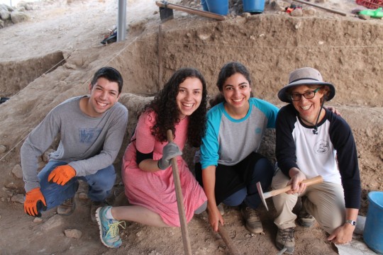 Students Moses Dyckman, Meredith Shapiro, Rebecca Zami and Professor Jill Katz are excavating the Biblical city of Gath.The Sy Syms School of Business senior is one of three Yeshiva University undergraduates working with Dr. Jill C. Katz, clinical assistant professor of archeology, to excavate the Biblical city of Gath, hometown of the infamous Goliath, during a summer course in Israel.