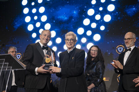 Rabbi Dr. Ari Berman awards the Katz family the Second Century Medallion at the 101st Annual YU Hanukkah Dinner