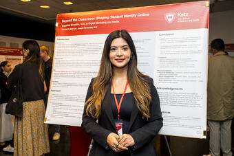 In a world increasingly shaped by digital interactions, social media has emerged as a vital platform for students to express themselves, form connections and build a sense of belonging. At the Katz School’s Graduate Symposium on Science, Technology and Health, Sagarika Shrestha, a graduate of the M.S. in Digital Marketing and Media, explored how social media platforms function as informal “third places” where students cultivate identity and community beyond the confines of home and classroom in her study, “Beyond the Classroom: Shaping Student Identity Online.”