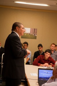 “After leading EL AL for a year and a half, I can tell you that it is a very complicated company,” said Elyezer Shkedy, president and CEO of EL AL Israel Airlines, who discussed Israel’s business climate, as well as his own professional journey, with Yeshiva University students on Wednesday, September 14. The lecture was hosted by TAMID, a student-run organization that connects American business students with the Israeli economic landscape.