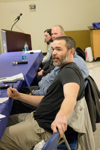 Several audience members had questions for the panelists. One student wanted to know if he should believe the signs that street people display saying that they’re homeless and need money. “Yes and no,” said Williams. “No doubt some people are telling the truth and some people aren’t. I usually don’t give money – granola bars are what I usually hand out, though a lot of people don’t like granola bars. The only advice I can give is that you have to follow your own conscience.”