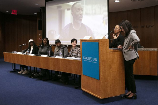 The panel discussion started with an interview with Kevin Richardson, one of The Exonerated Five portrayed in Netflix’s miniseries When They See Us. “We shook the world with our story,” Richardson told Cardozo 1L Victoria Lowe, who interviewed him in a pre-recorded video session. “It’s surreal, but it’s so powerful what people can do with a vision.” The panel also included Dominic Dupont, who was featured in the HBO/Vice documentary Raised in the System. “There was a school-to-prison pipeline,” Dupont said. “Why was it happening and how could we change that narrative?” Kay Murray, deputy general counsel at First Look Media, discussed the legal challenges of creating a film with a social justice angle. She said common issues entertainment lawyers face include defamation, privacy and confidentiality. For documentaries, she added that licensing archival footage is particularly important. Sharonne Salaam, mother of Yusef Salaam who was also portrayed in When They See Us, ended the panel by urging the audience to call their representatives regarding New York state bill S2074A, which concerns compensation for wrongful convictions.