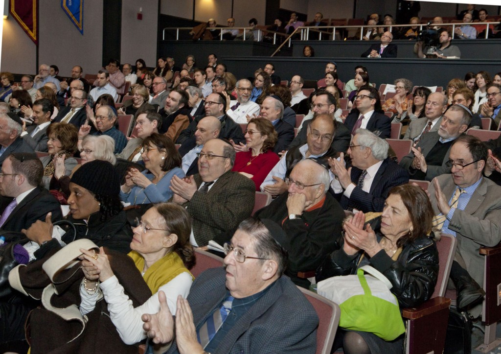 The third of this year’s Great Conversations on Religion and Democracy series of the Zahava and Moshael Straus Center for Torah and Western Thought, the event followed on the success of the two earlier installments in which saw the Straus Center hosted Senator Joseph Lieberman and Chief Rabbi Lord Jonathan Sacks. As director of the Straus Center, Soloveichik introduced and conducted the event. He explained how the topic was chosen because of its timeliness to the holiday of Purim, in which the Jewish people commemorate the vanquishing of their foes while living in the Persian Empire. He used this parallel to segue into a discussion regarding Mukasey’s involvement with the legal response to terrorism during his tenure as a judge in New York and later working for the administration of President George W. Bush. The conversation focused on topics including how to legally deal with the rise of terrorism, the Bush administration’s legacy regarding interrogation techniques and how best to detain individuals who wish to harm the United States. Soloveichik brought up the 1995 trial of Sheikh Omar Abdel-Rahman, known as the Blind Sheik and the mastermind of the 1993 World Trade Center bombing, presided over by Mukasey. Many of the terrorists involved were caught by the FBI and brought to trial in New York as criminals. Mukasey noted that in retrospect this was not ideal. “The mistake was that we did not see this as a war against the United States but as a crime,” he said. “In reality, this was a military effort that required a military response.” After the jury found the terrorists guilty, Mukasey sentenced them to life imprisonment as their crime of seditious conspiracy was not eligible for the death penalty. From there the discussion shifted gears to the Bush administration’s handling of detainees during the War on Terror. Here Mukasey shared his disappointment regarding the public view of the "enhanced interrogation techniques" utilized by the CIA. He said that referring to the intelligence gathering method as such was the “worst form of branding since New Coke.” He would have preferred that it had been called “harsh” or “coercive” interrogation instead. “What this label suggested was that what was being done was so horrible that it could not be accurately described as harsh, which it was, or coercive, which it was,” he said. “Instead they used a weasel term like enhanced integration techniques. I thought that that was a huge mistake. It suggested that something unspeakably bad and probably illegal was being done, neither of which was true. They should have just said harsh interrogations.” To help further prevent international terror, Mukasey recommended the setting of special legal parameters to handle the detention of enemy combatants to ensure that the CIA or other government organization can properly interrogate them without worrying about breaking the law. Upon exiting the Cultural Center, Kimberly Khay, a Stern College for Women student in Soloveichik’s Judaism and American Democracy class said, “Tonight’s event was required for our course but I would have come any way. This offered great insight into important legal and political issues of our day.”
