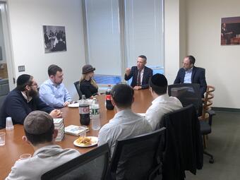 It is that relationship with American Jews that is the subject of Porwancher’s latest book, American Maccabee: Theodore Roosevelt and the Jews. Porwancher spoke about the book to a group of Jay and Jeanie Schottenstein Honors Program and Zahava and Moshael J. Straus Center for Torah and Western Thought students on Sunday, Sept. 14, with Straus Center Deputy Director and Senior Advisor to the Provost Rabbi. Dr. Stuart Halpern moderating. The Senator Joseph Lieberman – Mitzner Center for Public Service and Advocacy and the Rabbi Lord Jonathan Sacks-Herenstein Center for Values and Leadership also co-sponsored the event.