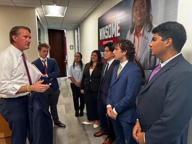 Governor Glenn Youngkin of Virginia meeting with interns, including Anouchka Ettedgui.