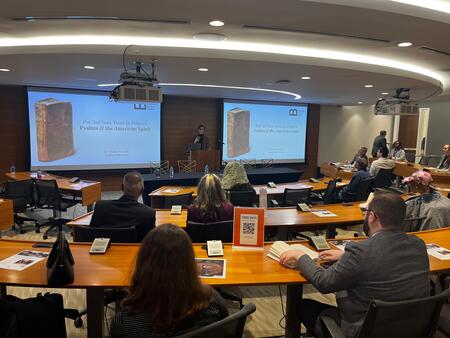 The event, sponsored by the Academic Engagement Network (AEN), was moderated by Dr. Yisroel Benporat, senior associate for faculty engagement in New York at AEN. It featured brief talks by Jewish Roots contributors Dr. Mark David Hall (Regent University) and Dr. Shaina Trapedo (Yeshiva University), as well as the two editors, centered on their respective contributions to the volume. Dr. McClay discussed the impact the Hebrew Bible has had on American literature, focusing particularly on Nathaniel Hawthorne; Dr. Halpern discussed how the Hebrew Bible’s heroes—including Esther, Moses and Elijah—have helped shape the American concept of courage; Dr. Trapedo recounted the impact of the book of Psalms during the colonial period; and Dr. Hall detailed the roots of religious freedom in America.
