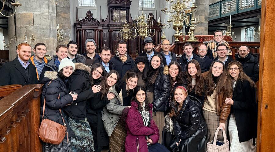 Over Yeshiva University’s 2026 winter break, the Zahava and Moshael J. Straus Center for Torah and Western Thought led a trip for its Straus Scholars to Amsterdam, the Netherlands, where they examined the city’s historical and current Jewish community through the prism of Torah and Western thought.