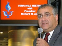 Nov 4, 2004 -- At two town hall meetings this week, President Richard M. Joel outlined developments in undergraduate academic programs, student life resources, key appointments and Jewish community initiatives.