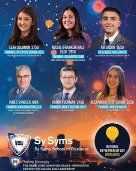 In honor of National Entrepreneur Day, the Sy Syms School of Business and Rabbi Lord Jonathan Sacks-Herenstein Center for Values and Leadership are proud to highlight six remarkable students, alumni and faculty whose ideas, passion and determination embody the spirit of entrepreneurial leadership. From establishing community-driven ventures to creating global travel services and consumer products, these innovative founders demonstrate the creativity and business acumen shaping the next generation of Jewish business leadership.