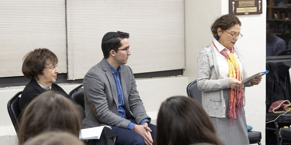 The discussion centered around the tension between what Fein called “performative education” and education for engagement and authenticity. The former focuses on making the proper gestures: people meet in a darkened auditorium, six candles are lit, everyone sings Hatikvah and Yom HaShoah has been observed. The latter effort aims for more than ritual; the goal is to have what people learn about the Holocaust transform their lives in a material and proactive way. “The only way to educate for memory,” said Fein, “is to build the conditions for engagement that demands an action: if not that, then what is the point?” Rosenberg agreed, noting that how the hundreds of interviews Names, Not Numbers has conducted are not only done to preserve the memories and stories of the original generation of survivors but also to turn the newest generations into advocates for preserving this history. She suggested a number of ways people can practice advocacy, from simply meeting with survivors and recording their stories to lobbying local and state governments to make Holocaust education mandatory at all levels. (For more information about the work that Names, Not Numbers has done at Yeshiva University, click here and here.) Elbogen demonstrated a little of what Fein and Rosenberg were getting at when they spoke about engagement and authenticity by reading from her book of poems, God Plays Hide and Seek. In these poems, as she explained, “I see myself as a teacher able to help others understand that if we choose to, we are able to leave behind the notion of being victims and embrace life, living it to the fullest.” Read about what Yeshiva University does to promote Holocaust education: International Holocaust Remembrance Day, Reflections on the State of Holocaust Education and Remembering the 80th Anniversary of Kristallnacht.