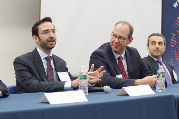 Immediately following the keynote, a roster of professional and YU alumni from the Federal Reserve to TD Securities participated in two lively panel discussions. The first panel featured finance executives candidly talking about the trajectory of their careers, the specifics of individual jobs and key characteristics recruiters use to identify the right candidate for the right position. Comprised of more recent YU alumni, the second panel offered an insider’s view of how to break into the financial industry. Guidance on résumé-building and making a smooth transition from school to the professional world was provided.