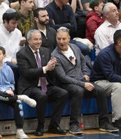 President Berman joins YU Mac fans in the stands to cheer on the team.