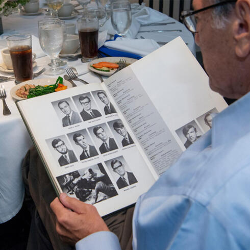 Classes of 1959 and 1969 Reunite, Reconnect and Remember They milled about the room wearing badges with black-and-white photos and ribbons delineating their graduation year, receiving handshakes and hugs of recognition. On Thursday, May 30, 2019, nearly 100 alumni descended on Abigael’s on Broadway…