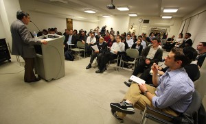 Cohen’s evening lecture, titled “Law and Society in Maimonides’ Mishneh Torah,” illuminated how certain commercial laws that were codified by Maimonides--and which perplexed later Talmudists--can be explained by looking at Cairo Geniza documents. The Geniza, with its thousands of intact Jewish writings from the tenth century and beyond, provides a window into the prevailing Jewish commercial practices of Maimonides’ time. Cohen has found that Jewish business practice was heavily influenced by conventions in Islamic commerce.