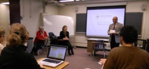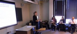 One of the foremost humanitarian organizations brought some of its experience to the social work classroom this week. Ms. Catherine Lague and Dr. Georgine Gorra of The American Red Cross met with Wurzweiler School of Social Work students on February 8th. The women were invited as guest presenters for the school’s “Trauma and Disaster” course by its instructor Dr. Jerry Streets, the Carl and Dorothy Bennett Professor in Pastoral Counseling. Ms. Lague, Assistant Director, and Dr. Gorra, a disaster mental health leader, reviewed the work of their organization and how to prepare and response to disaster. They also discussed how to understand the mental health care needs of those victimized by disaster. Some of the members of the class plan to receive more training from the Red Cross as volunteers as a result of hearing the Red Cross specialists, and to incorporate their learning in their work as social workers.